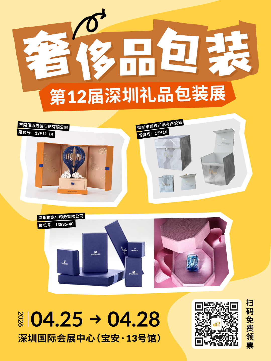 4月25-28日,第34届深圳礼品家居展于15号馆同期举办第12届深圳礼品、消费品包装及印刷展,简直把 2026 包装新趋势搬来了现场!